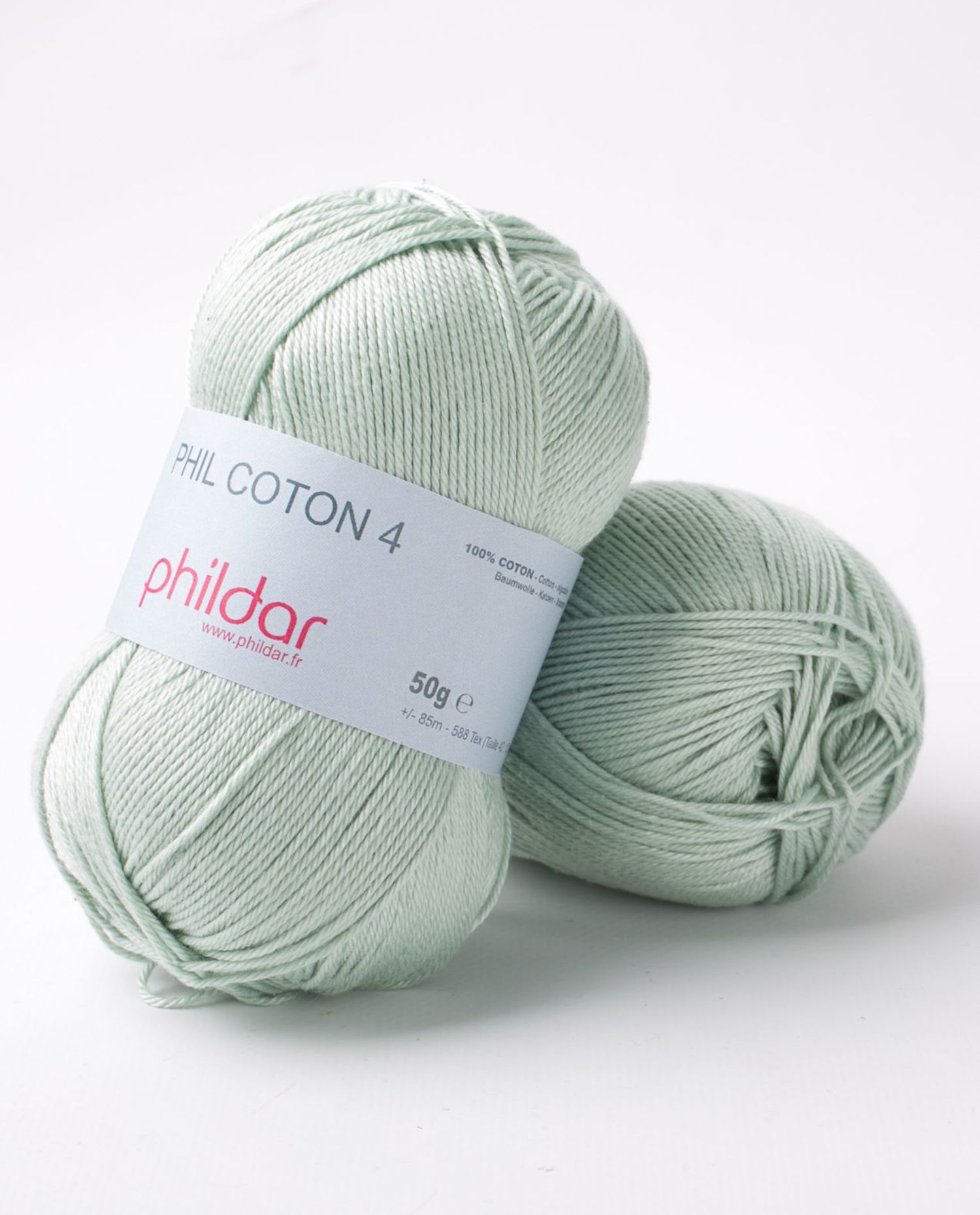 Phildar Phil Coton 4 is een zeer populair garen van 100% katoen. Het garen is verrijkt met aloë vera, wat een verzachtend en beschermend effect geeft. De kleuren van Phil Coton 4 komen overeen met Phil Coton 3, alleen is dit garen dikker. Phildar Phil Coton 4 is het ideale garen voor het haken van bijvoorbeeld knuffels, truien en home-deco.