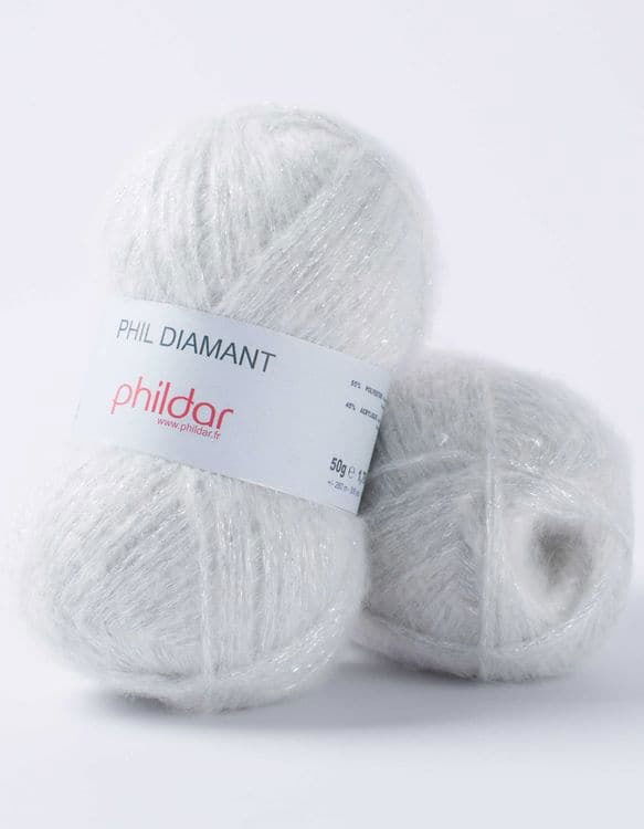 Phildar Phil Diamant is een super zacht harig met een subtiele luxe glans. In het harige garen is een lurexdraad verwerkt, waardoor breisel van het Phil Diamant garen een sprankelende en warme uitstraling krijgen.