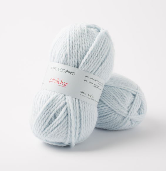 Phildar Phil Looping is een dikke, soepele draad die licht gedraaid is. Het garen is heerlijk zacht en licht in gewicht. Phil Looping is geschikt voor het breien en haken van kleding, accessoires en woondecoraties. De ronde draad geeft een duidelijk stekenpatroon, door zijn dikte kan er snel resultaat worden gemaakt.