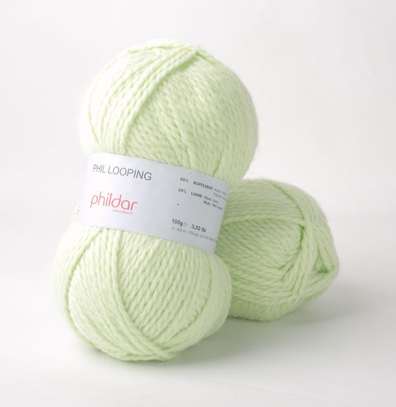 Phildar Phil Looping is een dikke, soepele draad die licht gedraaid is. Het garen is heerlijk zacht en licht in gewicht. Phil Looping is geschikt voor het breien en haken van kleding, accessoires en woondecoraties. De ronde draad geeft een duidelijk stekenpatroon, door zijn dikte kan er snel resultaat worden gemaakt.