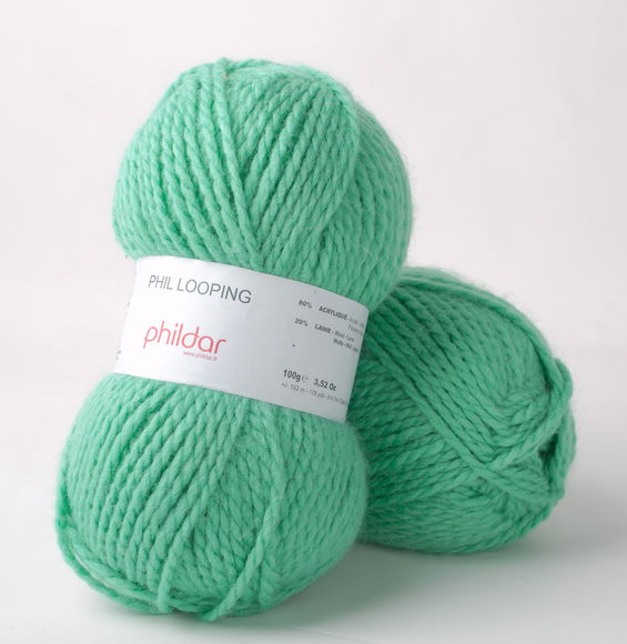 Phildar Phil Looping is een dikke, soepele draad die licht gedraaid is. Het garen is heerlijk zacht en licht in gewicht. Phil Looping is geschikt voor het breien en haken van kleding, accessoires en woondecoraties. De ronde draad geeft een duidelijk stekenpatroon, door zijn dikte kan er snel resultaat worden gemaakt.