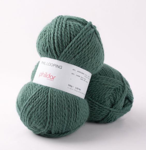 Phildar Phil Looping is een dikke, soepele draad die licht gedraaid is. Het garen is heerlijk zacht en licht in gewicht. Phil Looping is geschikt voor het breien en haken van kleding, accessoires en woondecoraties. De ronde draad geeft een duidelijk stekenpatroon, door zijn dikte kan er snel resultaat worden gemaakt.