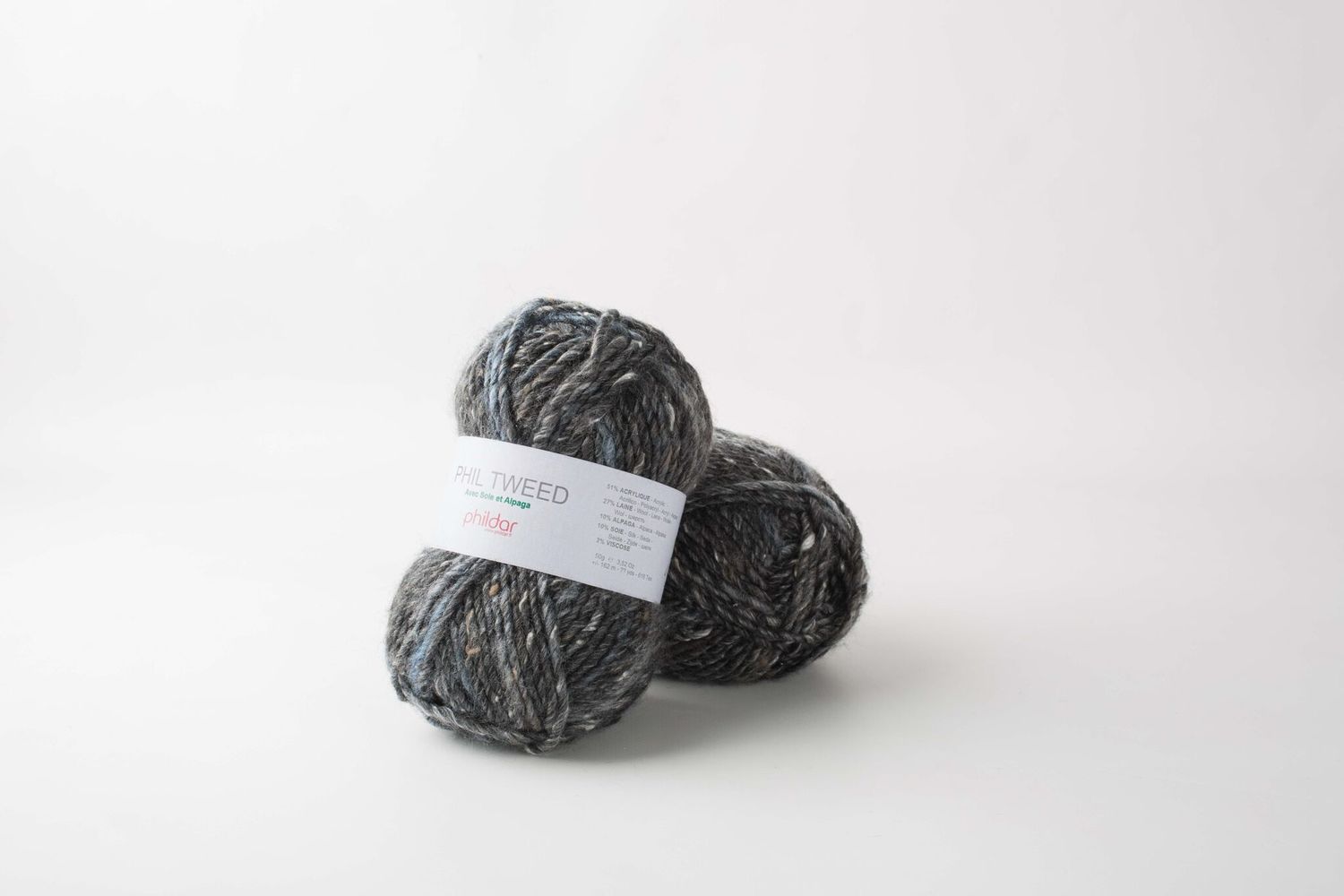 Phil tweed van Phildar is een licht gemeleerd garen, is iets harig en heerlijk zacht. De draad is enkel gewikkeld en daardoor soepel en luchtig, de haren van het garen zitten vrij los in de draad. Door de toevoeging van zijde heeft de draad een licht glans, dit in combinatie met de haren geeft de draad een fraai uitelijk.