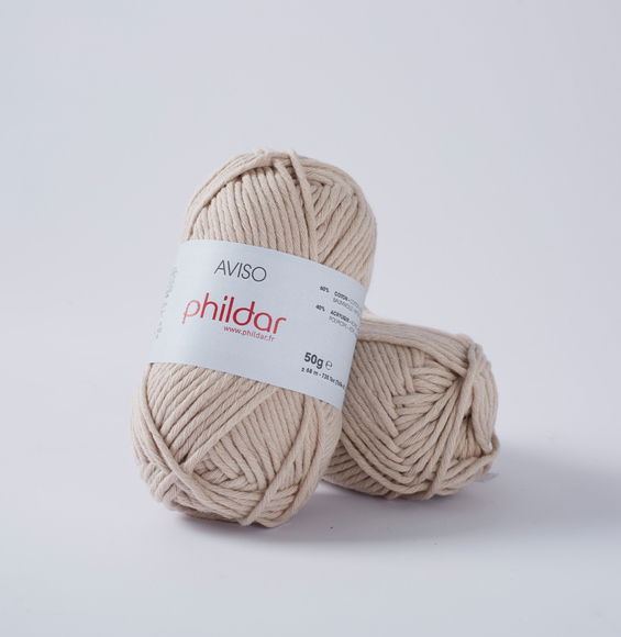 Phildar Aviso is een zacht garen van katoen en acryl, deze combinatie maakt dat Phildar Aviso het uiterlijk heeft van katoen en door de toevoeging van acryl licht en vormvast is. Het garen is geschikt voor naalddikte 4,5 t/m 5,5 en verkrijgbaar in zowel natuurlijke als frisse heldere kleuren.