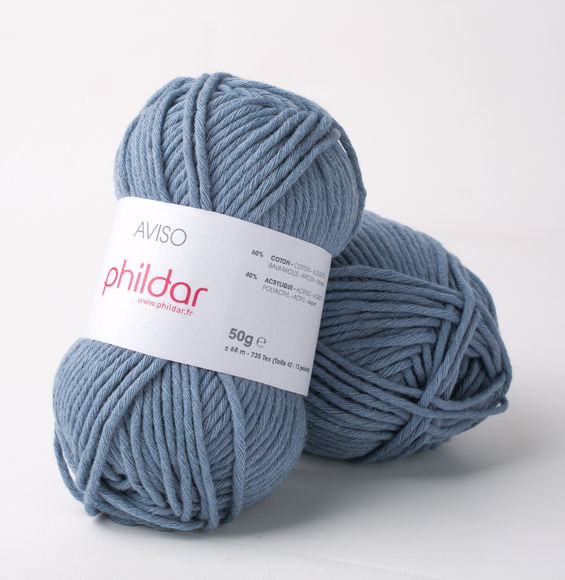Phildar Aviso is een zacht garen van katoen en acryl, deze combinatie maakt dat Phildar Aviso het uiterlijk heeft van katoen en door de toevoeging van acryl licht en vormvast is. Het garen is geschikt voor naalddikte 4,5 t/m 5,5 en verkrijgbaar in zowel natuurlijke als frisse heldere kleuren.