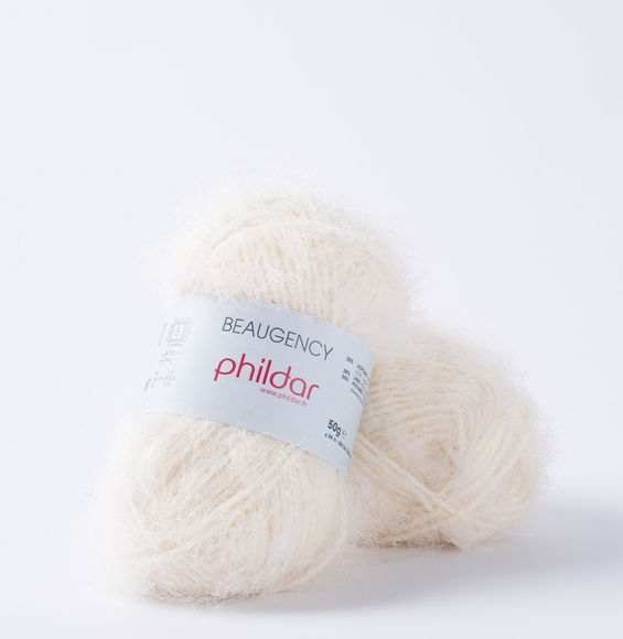 Phildar Beaugency is een harig garen, wat je breisel het uiterlijk van mohair geeft. De draad heeft een stevige kern, waarin de haren van ca 2 cm goed vast zitten. De draad verhaard niet, alleen door hard te trekken kunnen de haartjes uit de draad worden getrokken. Kleding gemaakt van dit super zachte garen, dragen heerlijk warm en comfortabel. Beaugency is geschikt voor kinderen en volwassenen, voor het maken van vest, trui, muts, sjaal of knuffeldieren.