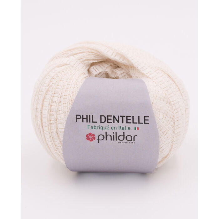 Dit luxe lintgaren met kantlook is perfect om originaliteit, vrouwelijkheid en lichtheid aan je breisels te geven. De PHIL DENTELLE wordt gemaakt in Italië en bestaat voornamelijk uit katoen, ook een echte aanwinst.