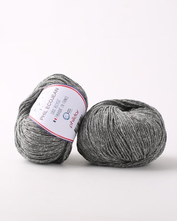 Phil Ecojean is zachte soepele draad van 100% gerecycleerde vezel. Het katoen komt van spijkerbroeken en het polyester uit gerecycled plastic flessen. Deze draad heeft (GRS) certificering.