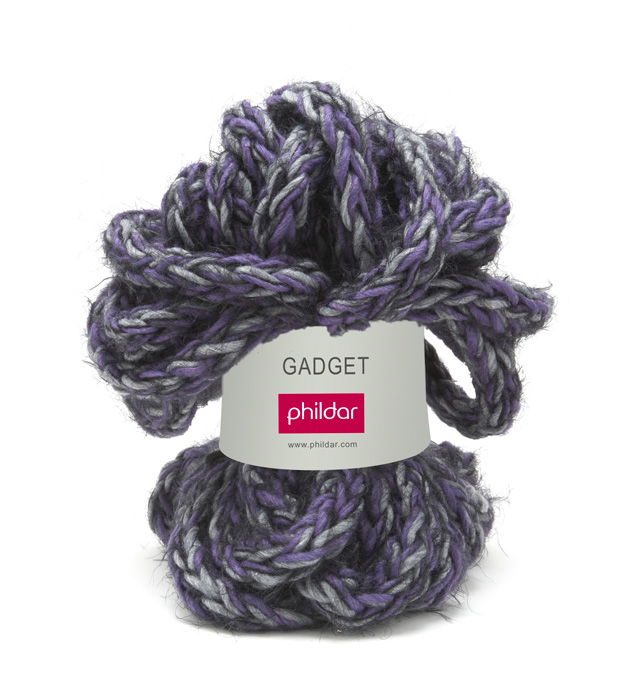 Phildar Gadget 001 flanelle. Een fancy garen, speciaal voor de winter ... Een zeer dik tweekleurig garen in een streng van 200 gram. 2 patronen staan op het woletiket. Je hebt bij dit garen geen breinaalden nodig.