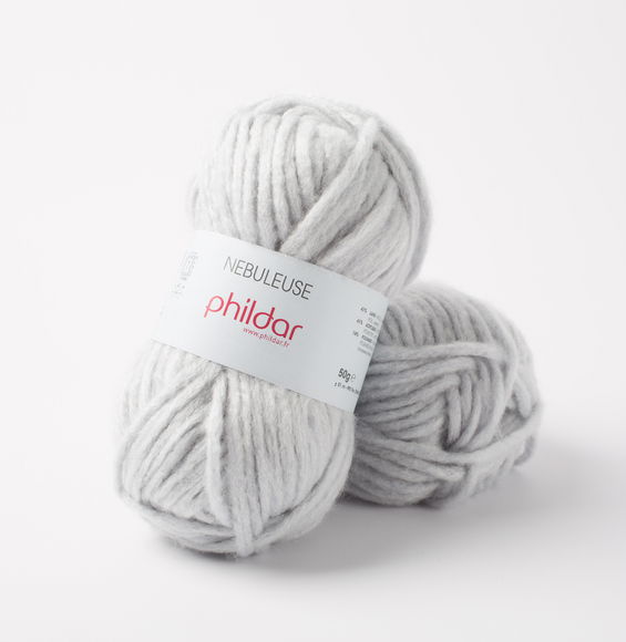 Phildar Nebuleuse is een dik, luchtig en licht garen met veel volume. Nebuleuse is verkrijgbaar in verschillende licht gebleekte kleuren en geeft breiwerk een stoere uitstraling. Phildar heeft een groot aantal breipatronen gemaakt met het garen, waaronder kindermuts, sjaal, damesvest, trappelzak, cape, snood en nog veel meer.