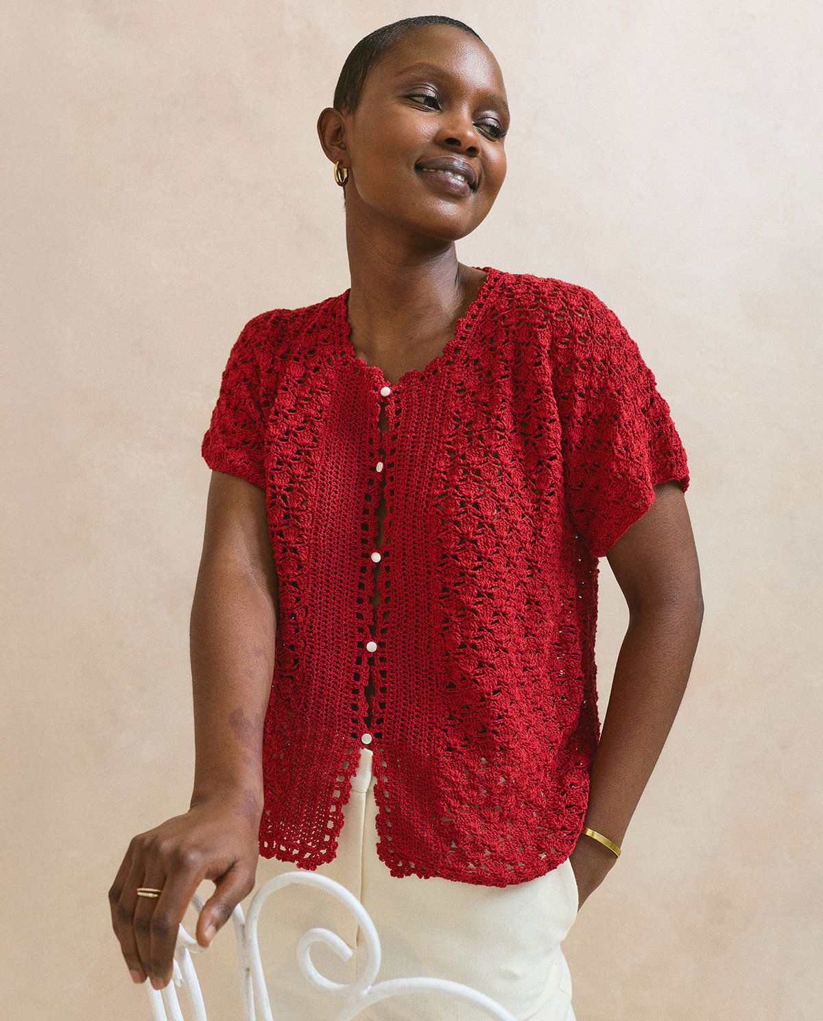 Damesvest met geschulpte rand gemaakt van Boeken Phildar