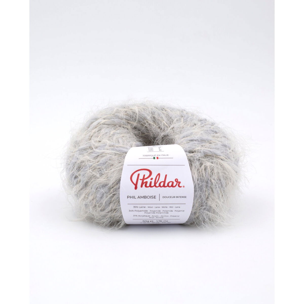 Phildar Phil Amboise is een dik mohair garen, waarbij de kleur van de draadkern verschilt met de haren.