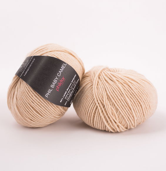 Phildar Phil baby camel, is een fijne ronde draad en is door de toevoeging van het buikhaar van een kameel en de fijne merinowol, heerlijk zacht. Breiwerk met dit garen geeft een egaal stekenpatroon en heeft een verfijnde glans.