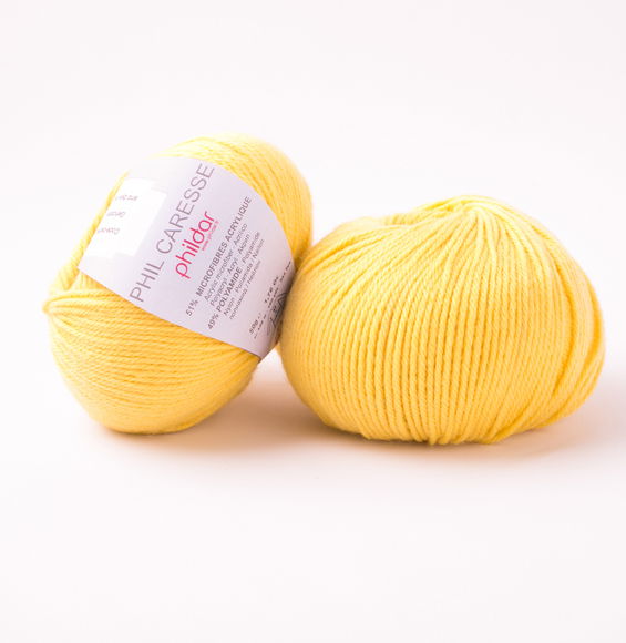 Phildar Phil Caresse doet haar naam eer aan, het garen is super zacht en makkelijk in onderhoud, ideaal voor babykleding. Het garen heeft het uiterlijk en voelt aan als een wollen garen, maar is 100% kunstmatig, daardoor ook ideaal voor mensen met een wolallergie.