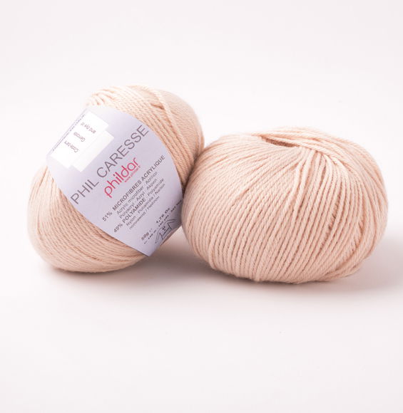 Phildar Phil Caresse doet haar naam eer aan, het garen is super zacht en makkelijk in onderhoud, ideaal voor babykleding. Het garen heeft het uiterlijk en voelt aan als een wollen garen, maar is 100% kunstmatig, daardoor ook ideaal voor mensen met een wolallergie.