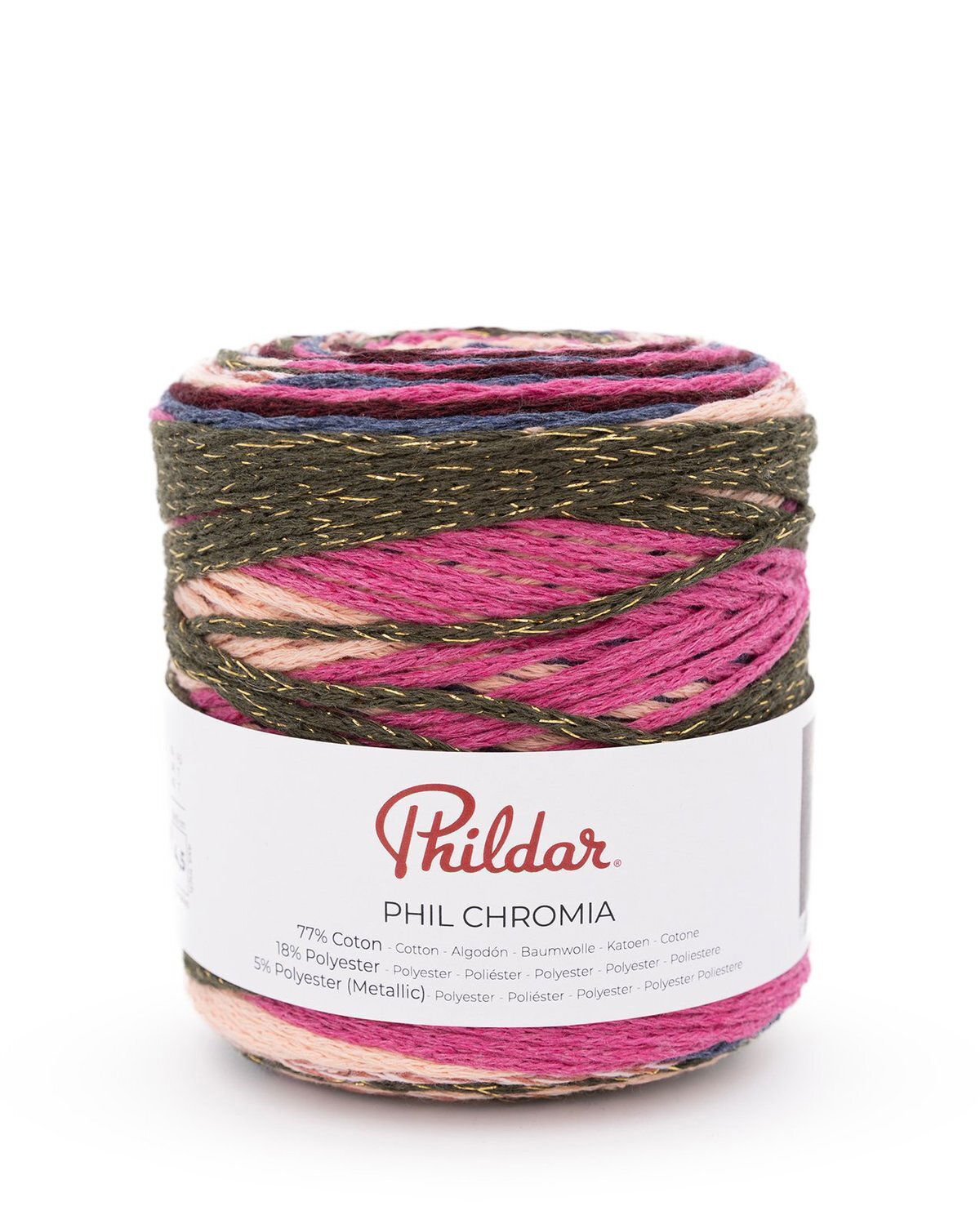 Phildar Phil CHROMIA is een draad die een breed kleurenspectrum heeft om mooiste zomerse accessoire-creaties een levendig uitelijk te geven. Met een samenstelling van voornamelijk katoen, zorgt deze zeer kleurrijke draad ervoor dat je met gemak en de voldoening van een natuurlijke touch, trendy accessoires kunt haken of breien.