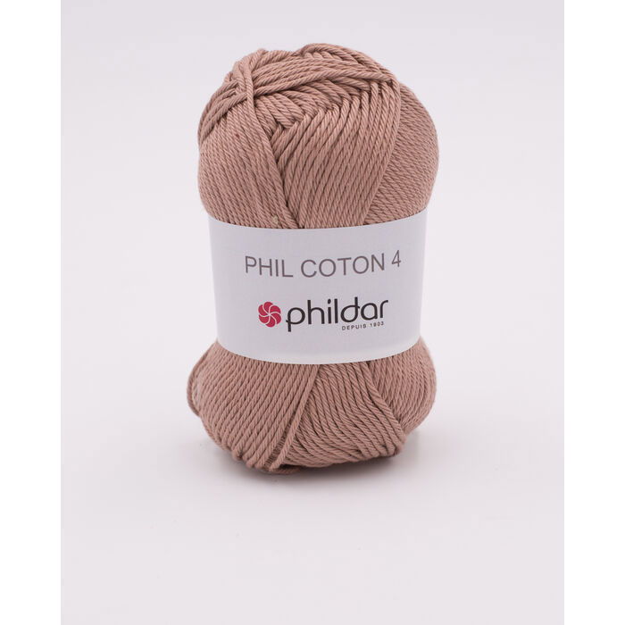 Phildar Phil Coton 4 is een zeer populair garen van 100% katoen. Het garen is verrijkt met aloë vera, wat een verzachtend en beschermend effect geeft. De kleuren van Phil Coton 4 komen overeen met Phil Coton 3, alleen is dit garen dikker. Phildar Phil Coton 4 is het ideale garen voor het haken van bijvoorbeeld knuffels, truien en home-deco.