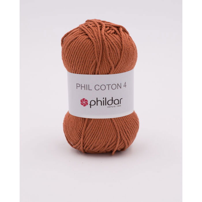 Phildar Phil Coton 4 is een zeer populair garen van 100% katoen. Het garen is verrijkt met aloë vera, wat een verzachtend en beschermend effect geeft. De kleuren van Phil Coton 4 komen overeen met Phil Coton 3, alleen is dit garen dikker. Phildar Phil Coton 4 is het ideale garen voor het haken van bijvoorbeeld knuffels, truien en home-deco.