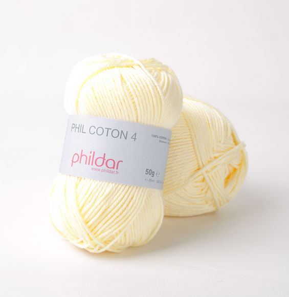 Phildar Phil Coton 4 is een zeer populair garen van 100% katoen. Het garen is verrijkt met aloë vera, wat een verzachtend en beschermend effect geeft. De kleuren van Phil Coton 4 komen overeen met Phil Coton 3, alleen is dit garen dikker. Phildar Phil Coton 4 is het ideale garen voor het haken van bijvoorbeeld knuffels, truien en home-deco.