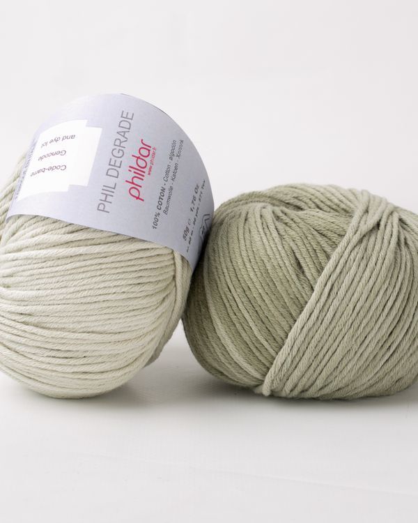 Phildar Phil Degrade is een draad van 100% katoen, die licht in tint verloopt.