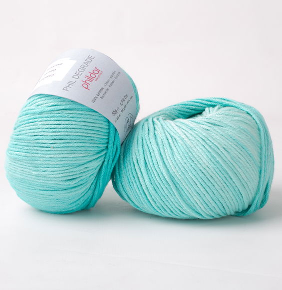 Phildar Phil Degrade is een draad van 100% katoen, die licht in tint verloopt.