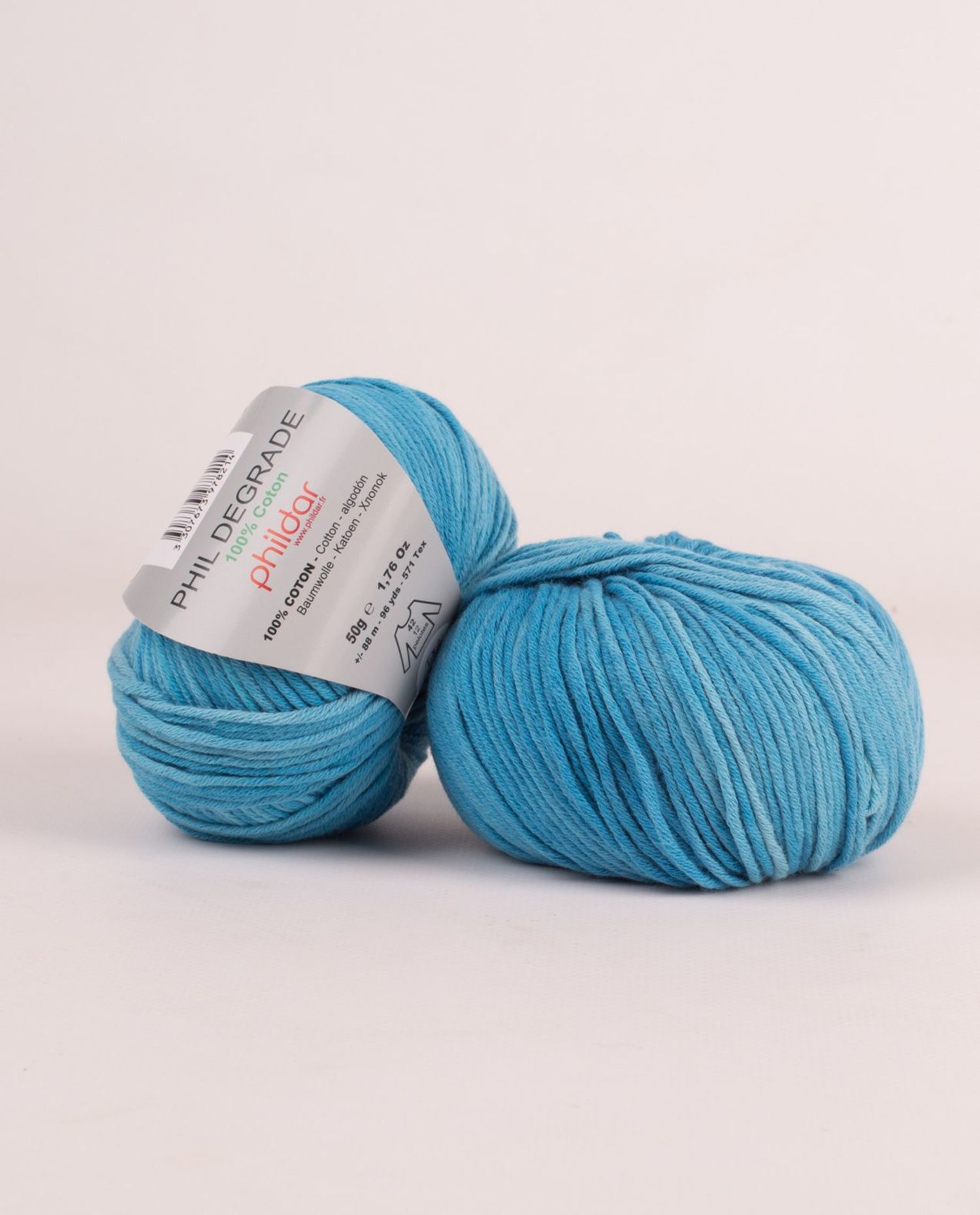 Phildar Phil Degrade is een draad van 100% katoen, die licht in tint verloopt.
