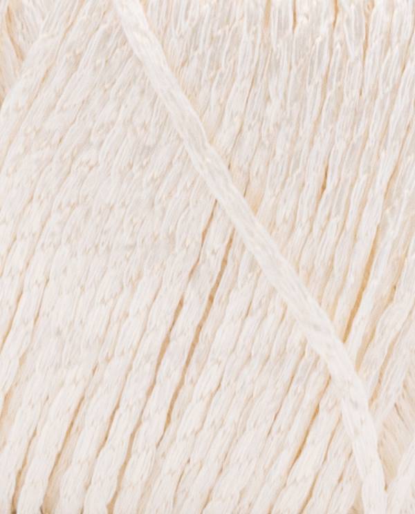 Wat Phil Divin echter echt onderscheidt, is de textuur. Het is een 'tape' garen, wat betekent dat de draad niet rond gesponnen is, maar plat is, als een miniatuur lint. Deze platte structuur zorgt voor een uniek en modern steekbeeld. De steken liggen plat en gedefinieerd, wat een bijzonder effect geeft bij zowel eenvoudige tricotsteken als complexere ajourpatronen. Het resultaat is een gebreid of gehaakt weefsel dat licht, luchtig en tegelijkertijd verrassend stabiel is. Deze structuur, in combinatie met de metallic glans, vangt het licht op een verfijnde manier, waardoor een diepte en levendigheid ontstaat die met een standaard garen onbereikbaar is.