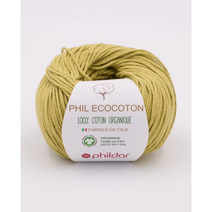 Phildar Ecocoton is een 100% katoenen garen. Dit biologische katoen wordt geteeld op gecertificeerd land, vrij van giftige stoffen en allerlei soorten pesticiden en insecticiden. Het is ideaal voor alle huidtypes.