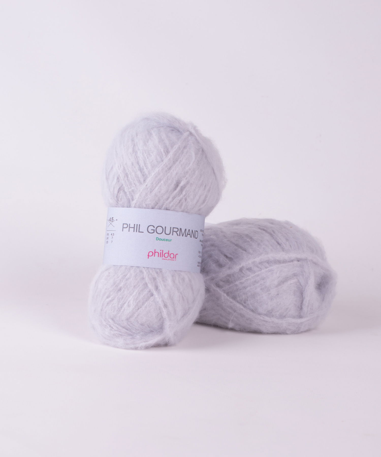 Phil Gourmand van Phildar is een harig en zachte draad, heerlijk zacht en door zijn samenstelling geschikt voor mensen die geen wol verdragen. Het garen pluist niet.