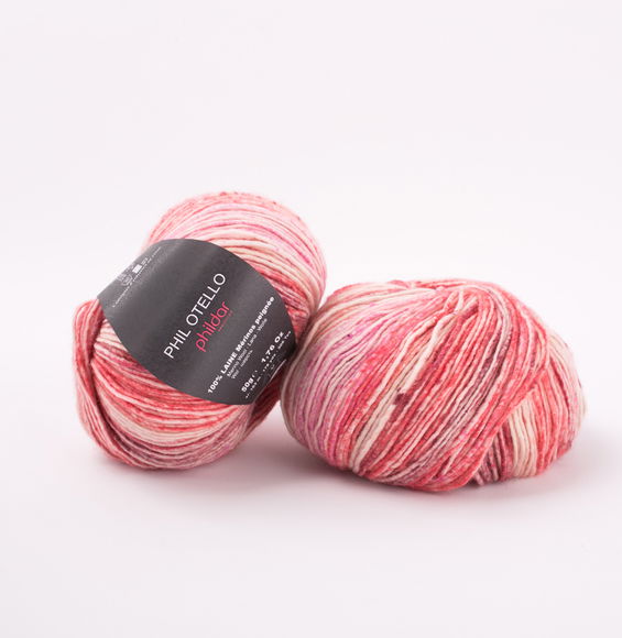 Phildar Phil Otello is een meer kleurige draad van 100% merino. De draad is enkel gewikkeld en heeft een licht verloop in dikte.