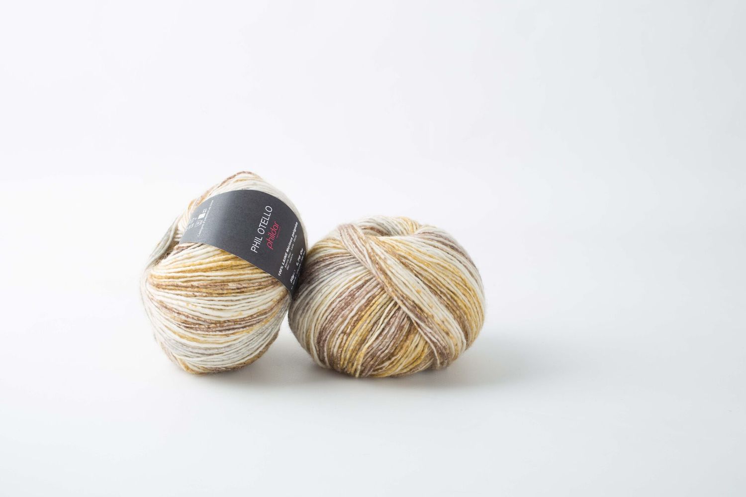 Phildar Phil Otello is een meer kleurige draad van 100% merino. De draad is enkel gewikkeld en heeft een licht verloop in dikte.