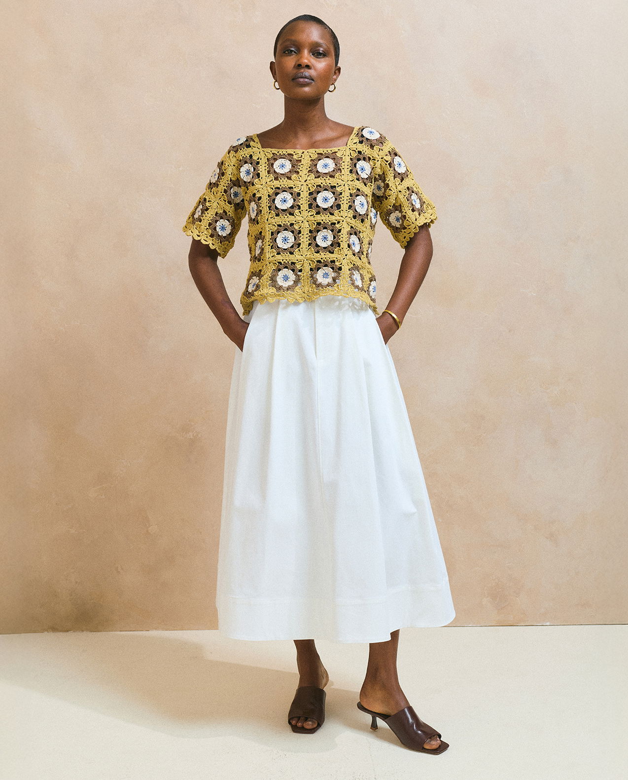 Top in Granny Square met bloem patroon gemaakt van Phildar Phil Perle 5
