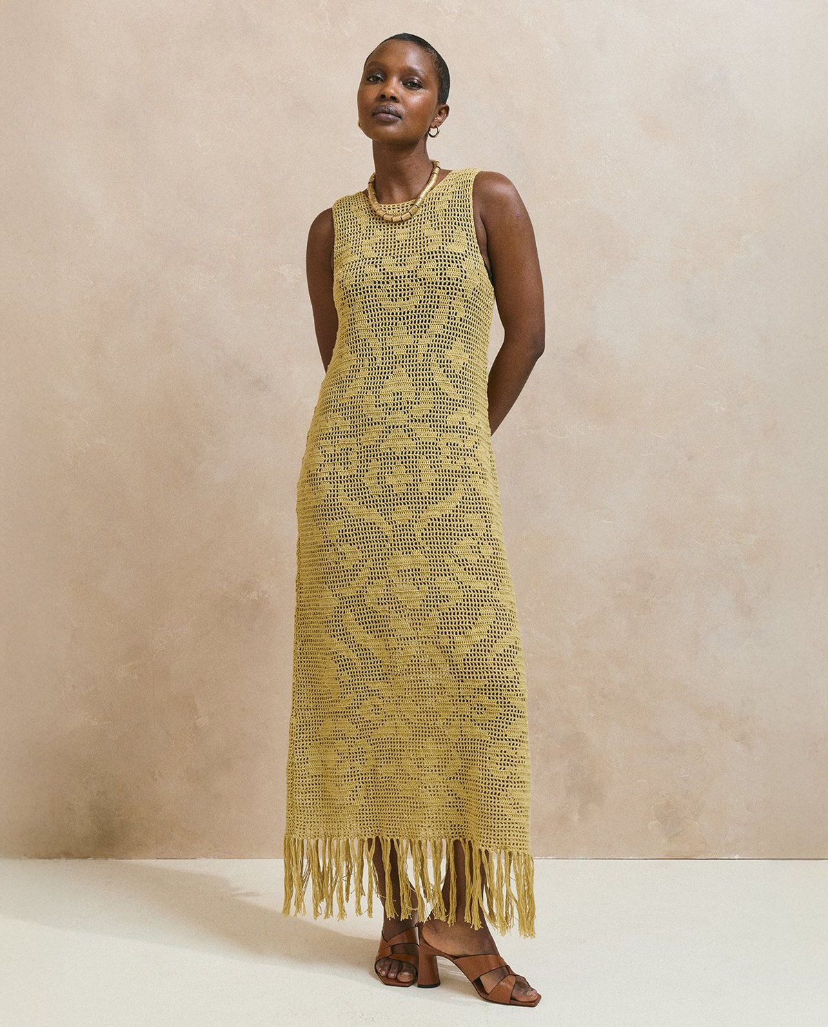 Enkel lange jurk gemaakt van Phildar Phil Perle 5