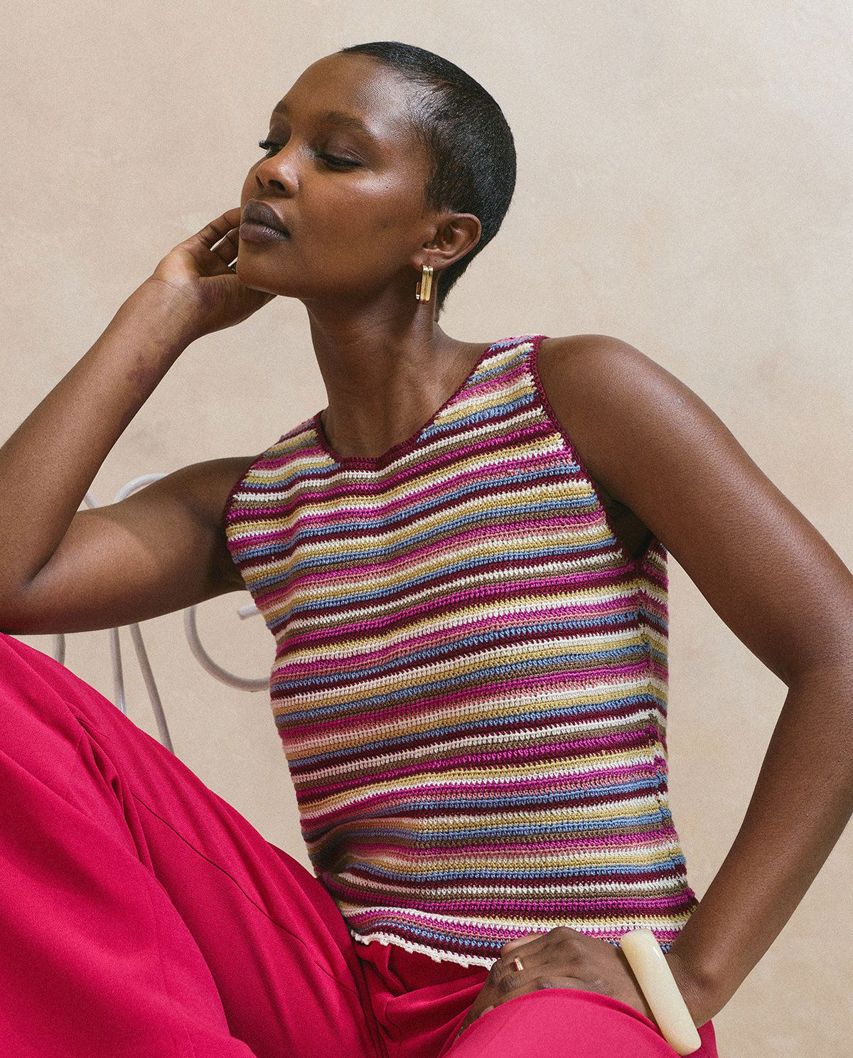 Gestreept damesshirt met aansluitende hals gemaakt van Phildar Phil Perle 5