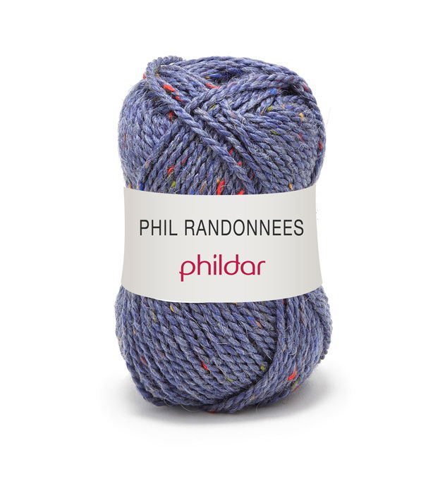 Phildar Randonnees is een stoer garen met een ruige uitstraling, maar is daarin tegen zeer soepel en zacht. De mee gesponnen gekleurde vezels geven het garen een kiezeleffect.