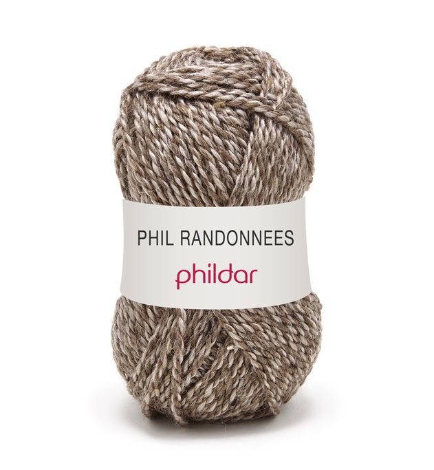Phildar Randonnees is een stoer garen met een ruige uitstraling, maar is daarin tegen zeer soepel en zacht. De mee gesponnen gekleurde vezels geven het garen een kiezeleffect.