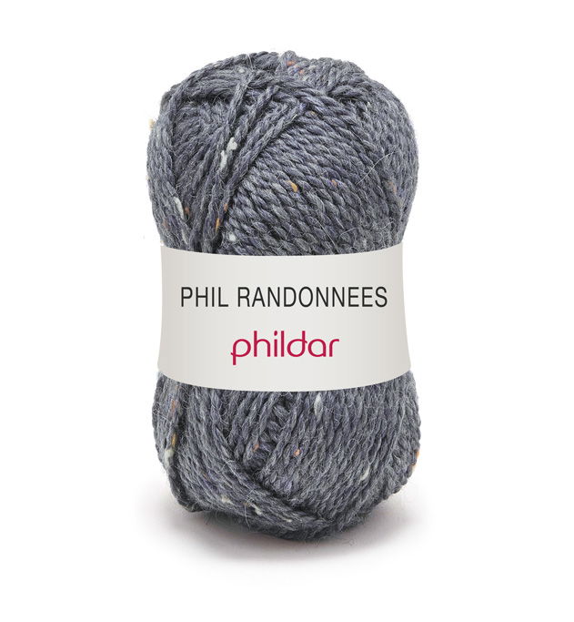 Phildar Randonnees is een stoer garen met een ruige uitstraling, maar is daarin tegen zeer soepel en zacht. De mee gesponnen gekleurde vezels geven het garen een kiezeleffect.