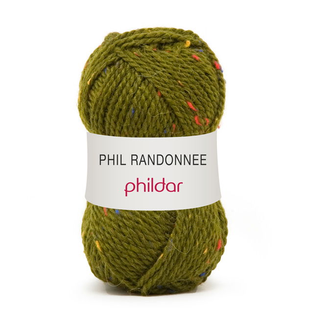 Phildar Randonnees is een stoer garen met een ruige uitstraling, maar is daarin tegen zeer soepel en zacht. De mee gesponnen gekleurde vezels geven het garen een kiezeleffect.