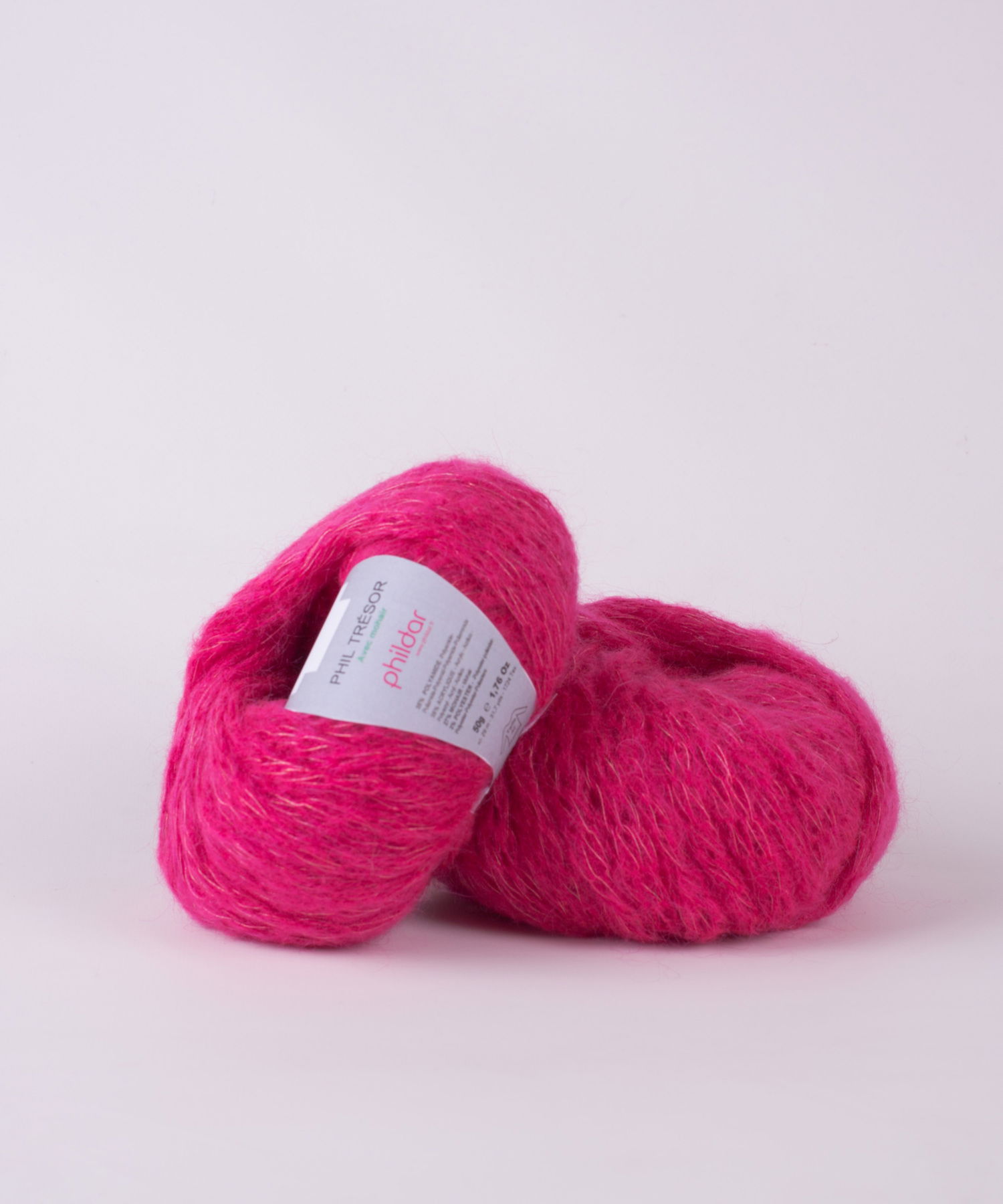 Phil Tresor van Phildar is een mohair garen met een subtiele glimmende draad. Met de dikke draad is er snel een fraai resultaat te behalen Het garen pluist niet, draagt licht en is heerlijk warm.