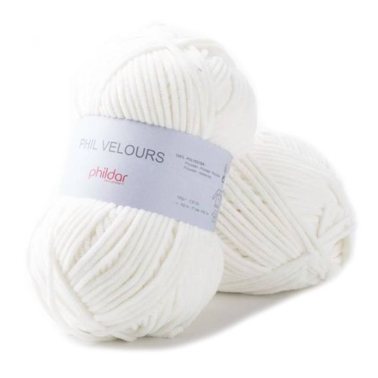 Phildar Phil Velours is een dik, rond en soepel garen, waarbij de draadjes stevig in de draad zijn verwerkt