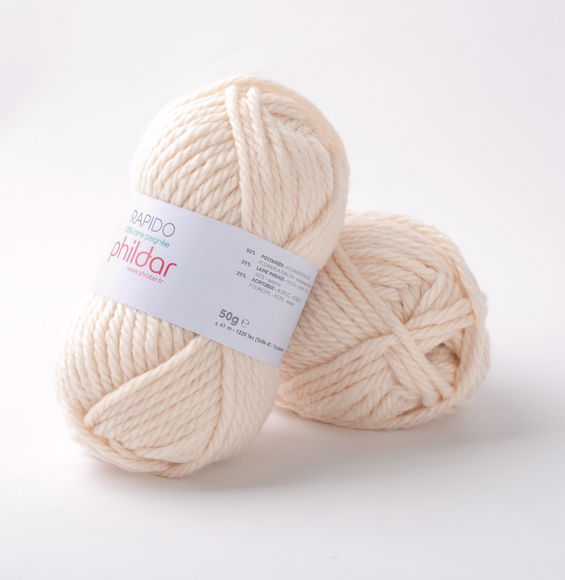 Phildar Rapido is een dikke draad voor naalddikte 6 a 7, waar eenvoudig en snel mee kan worden gewerkt. Deze breiwol is ideaal voor mensen die de techniek breien willen leren, een sjaal of muts is in een handomdraai klaar. Rapido bestaat is gemaakt van Nylon, wol en acryl. De synthetische vezels maken het garen sterk en de wol zorgt voor een zacht en warm gevoel.