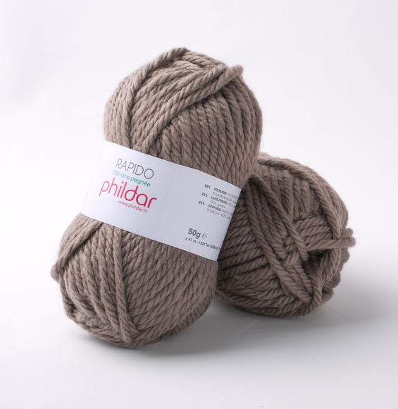 Phildar Rapido is een dikke draad voor naalddikte 6 a 7, waar eenvoudig en snel mee kan worden gewerkt. Deze breiwol is ideaal voor mensen die de techniek breien willen leren, een sjaal of muts is in een handomdraai klaar. Rapido bestaat is gemaakt van Nylon, wol en acryl. De synthetische vezels maken het garen sterk en de wol zorgt voor een zacht en warm gevoel.