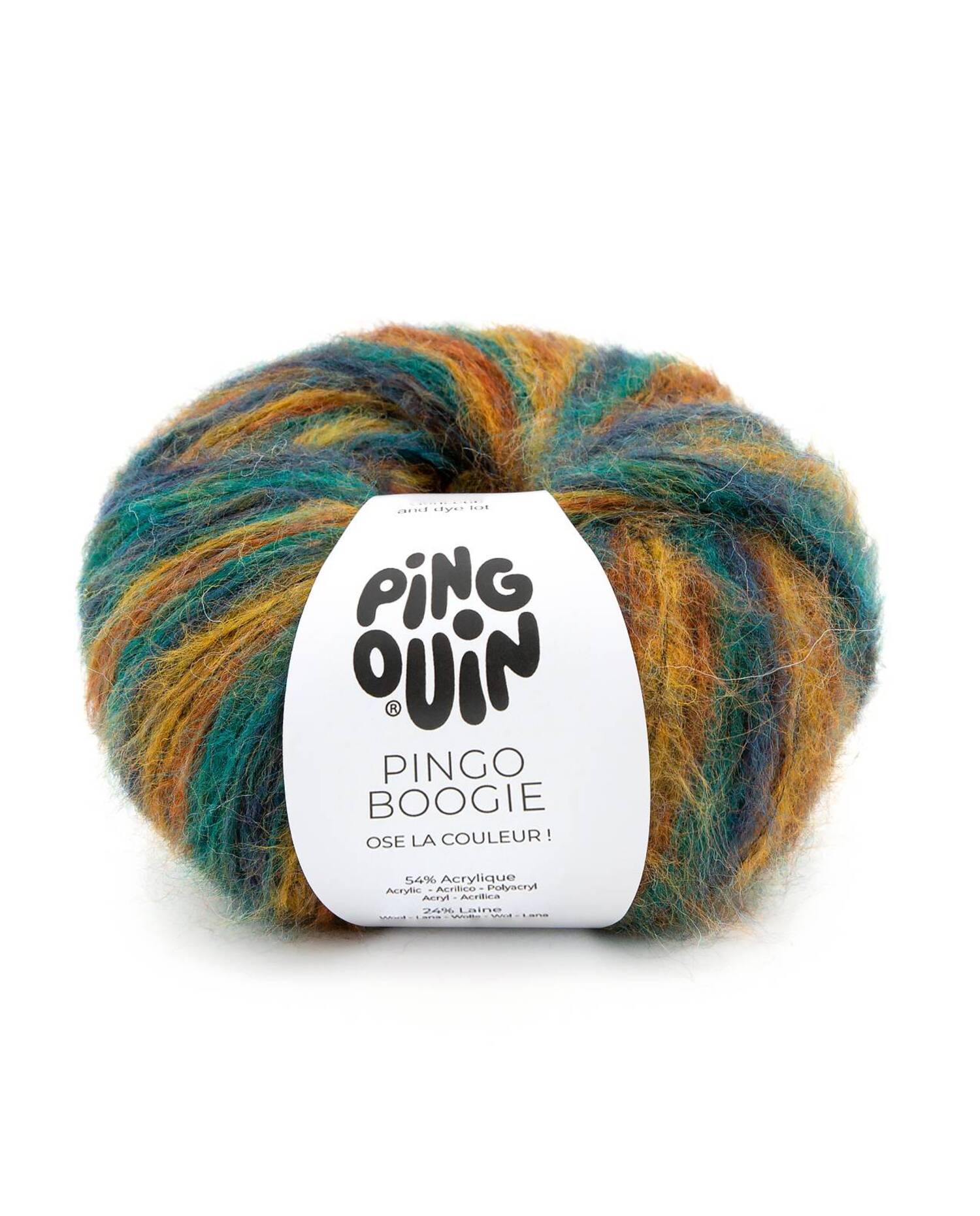 Pinguion Pingo Boogie is een gemĂȘleerd mohair garen voor pendikte 6, het garen is gemaakt van acryl, wol en polyamide