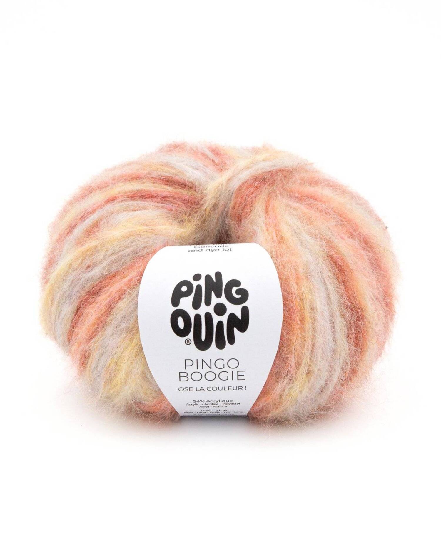 Pinguion Pingo Boogie is een gemĂȘleerd mohair garen voor pendikte 6, het garen is gemaakt van acryl, wol en polyamide