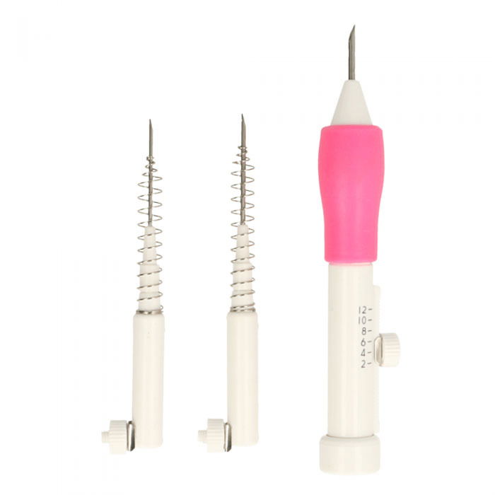 De Punch needle set maakt het mogelijk om in een mum van tijd effectvolle schilderijen en trendy wanddecoraties te borduren. Met de naald kunnen verschillende soorten steken worden gemaakt, resulterend in platte steken of lussen. Een dichte stof moet worden gebruikt als borduurondergrond en het spannen van de stof in een borduurraam is de voorwaarde voor succes! De set bevat twee vervang-naalden, twee draaddoorhalers en een beschrijving.