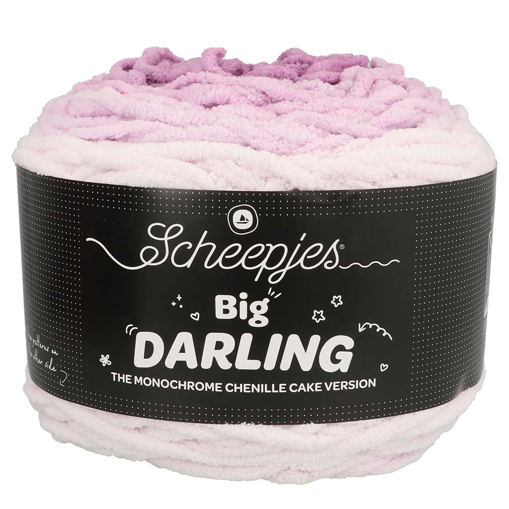 Scheepjes Big Darling is de dikkere variant van het populaire Little Darling garen, met dezelfde fluweelzachte touch, maar net dat beetje extra body en impact. Wat Big Darling uniek maakt, is het stijlvolle monochrome kleurverloop. De heerlijk grote garencakes hebben prachtig vloeiende overgangen van donker naar licht. Big Darling is bij uitstek geschikt voor grootschalige creaties zoals grote amigurumi's, plaids, woonaccessoires, chunky sjaals of zelfs moderne wanddecoraties. Big Darling is onweerstaanbaar zacht en aaibaar en zorgt voor een soepele structuur en ongekend comfort in elk project.