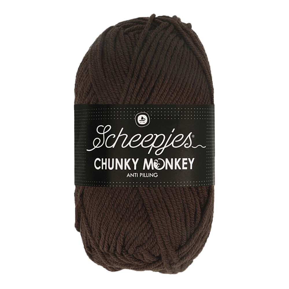 Chunky Monkey is een draad met textuur en geschikt voor pendikte nr 5.0 mm. De draad is vervaardigd van 100% Premium Acryl is lichtgewicht, hypo-allergeen, onderhoudsvriendelijk en beschikbaar over een zeer ruime kleurenpalet. Het garen is anti Pilling garen. Door gebruik van handgemaakte items, of het nu een kledingstuk of knuffel is, kunnen er kleine bolletjes van vezels op het oppervlak ontstaan. Dit verschijnsel heet Pilling. Scheepjes Chunky Monkey heeft een speciale behandeling ondergaan waardoor de kans hierop minimaal is.