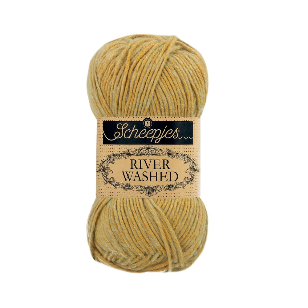 Scheepjes River Washed is een heerlijk zacht en soepel garen met een donzige poederlook. De draad is sterk en veerkrachtig en geeft een regelmatig stekenpatroon. Scheepjes Riverwashed is te vergelijken met het garen Stone washed, alleen heeft deze draad een geverfde binnendraad met daarom heen een in kleur afstekend netje, dit geeft de draad een unieke kleurstelling. Riverwashed geeft je werkstuk een stoere uitstraling en is prima te combineren met Stone Washed.