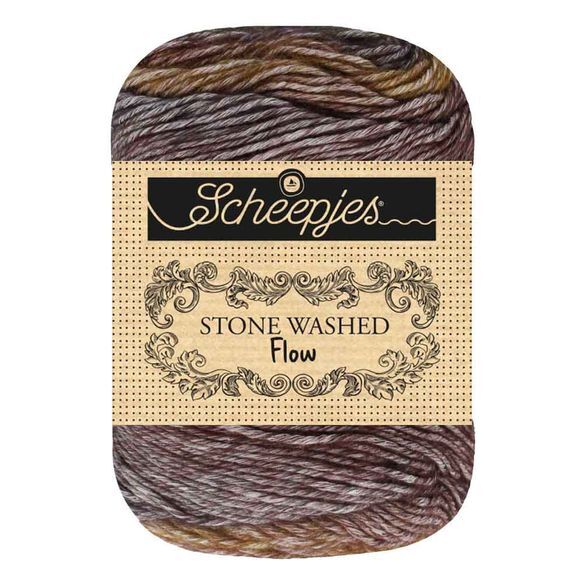 Scheepjes Stone Washed Flow is een variatie op het vertrouwde Scheepjes Stone Washed. Hetzelfde zijdezachte garen, maar dan met een prachtig, natuurlijk kleurverloop gemaakt van bestaande kleuren uit de Stone Washed collectie. Zo kun je bijzondere kleurwisselingen maken zonder dat je van bol hoeft te wisselen. Het karakteristieke Stone Washed uiterlijk komt door de unieke productiemethode van dit garen: in een netje van ecru-kleurig katoen worden kleurige en donzige acrylvezels geblazen. Het garen heeft de ademende kwaliteit van katoen, maar is dankzij het acryl sterk en gemakkelijk in onderhoud. Die combinatie maakt Scheepjes Stone Washed Flow ideaal voor de meest uiteenlopende brei- en haakprojecten en bovendien geschikt voor elk seizoen.