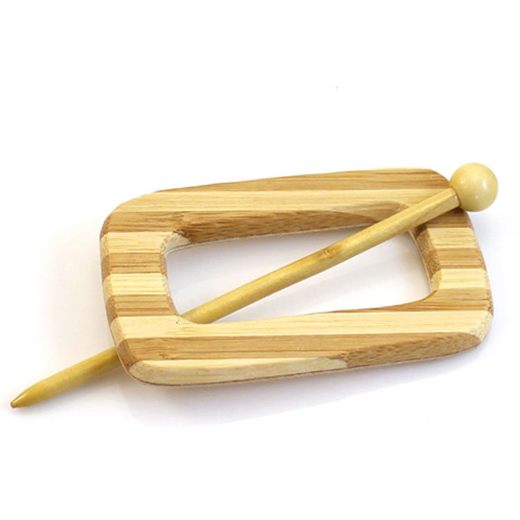 Sluiting met speld rechthoek 100 mm - hout in streep (op=op)